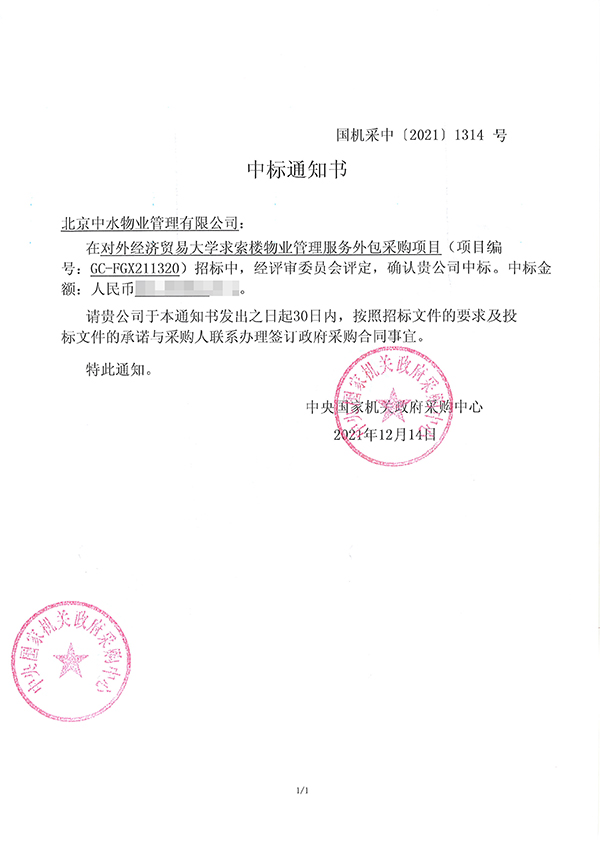 对外经济贸易大学2022年学生公寓保洁服务项目成功中标