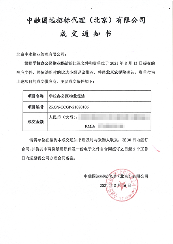 北京农学院学校办公区物业保洁项目成功中标
