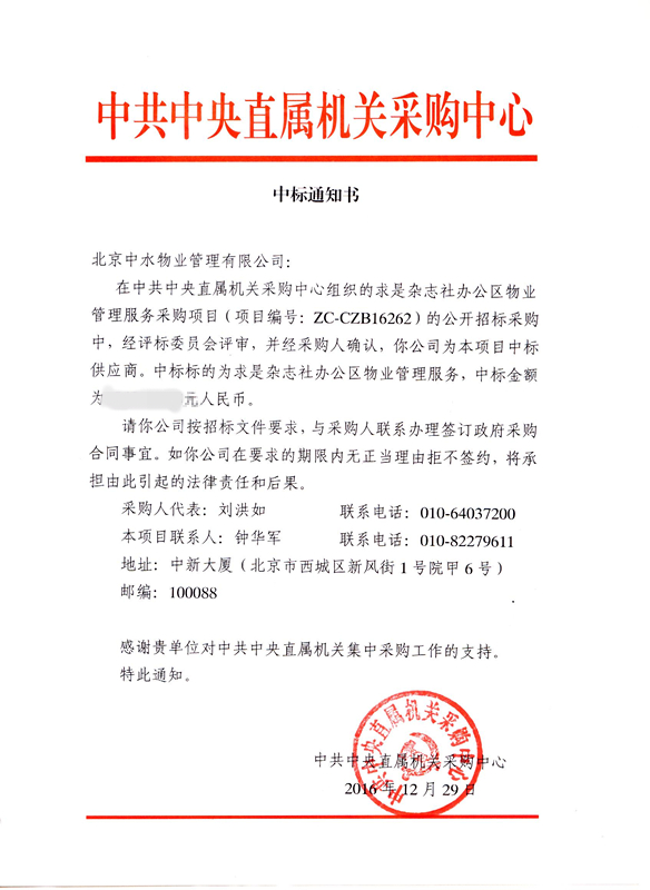 北京中水物业管理有限公司邢台分公司中共邢台市委机关办公楼项目顺利入场