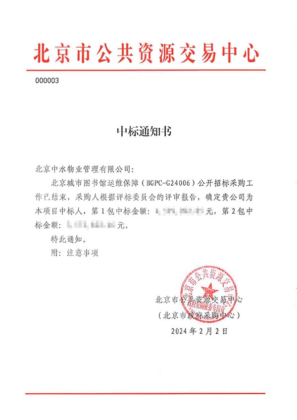 中水物业成功中标北京城市图书馆运维保障项目