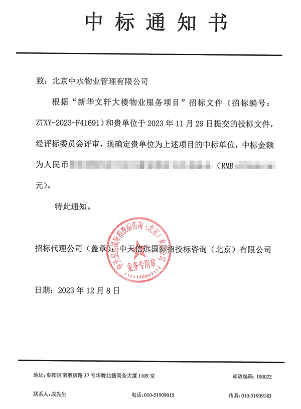 中水物业成功中标北京市西城区财政局办公楼物业管理服务项目