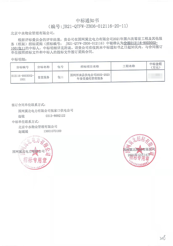 国网怀来县供电公司2022-2023年食堂管理服务项目成功中标