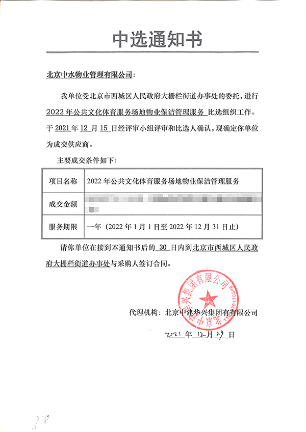 2022年公共文化体育服务场地物业保洁管理服务项目成功中标
