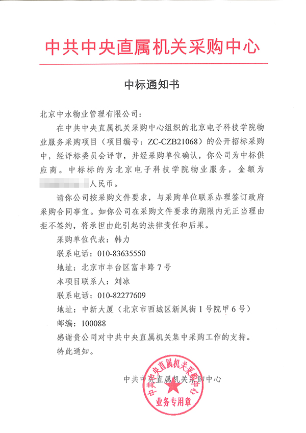 北京电子科技学院物业服务采购项目成功中标