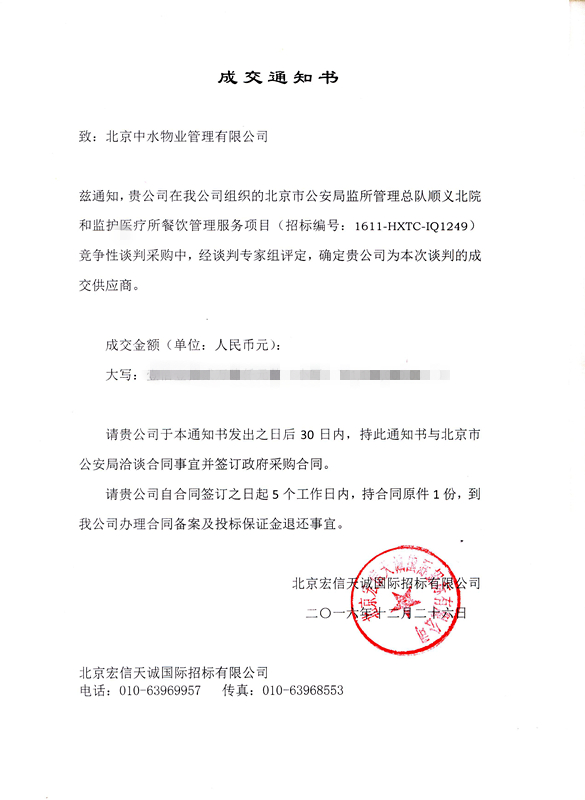 北京市公安局监所管理总队顺义北院和监护医疗所餐饮管理服务项目成功中标