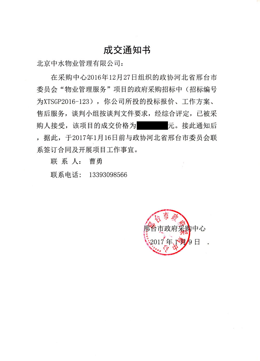 河北省邢台市委员会物业管理服务项目成功中标