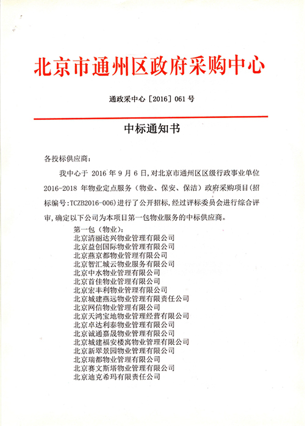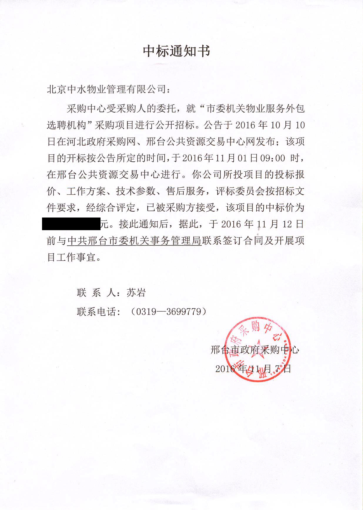 北京中水物业管理有限公司邢台分公司中共邢台市委机关办公楼项目顺利入场