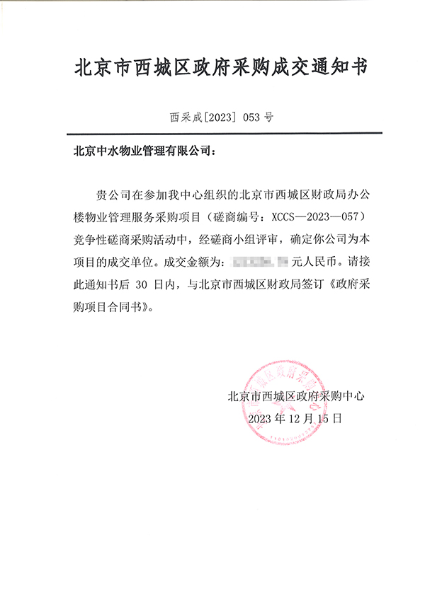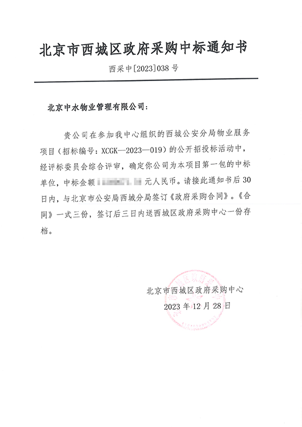 中水物业成功中标北京市西城区财政局办公楼物业管理服务项目
